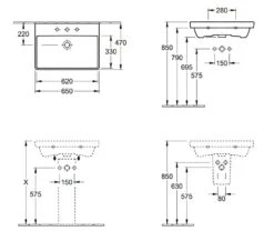 Villeroy & Boch Avento – Möbelwaschtisch, 600×470 Mm, Mit Überlauf, Mit Hahnloch, Alpinweiß 41586001