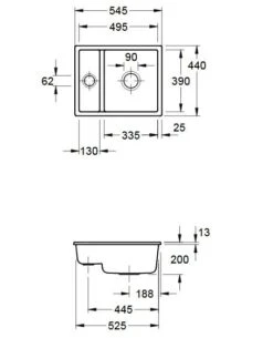 Villeroy & Boch Subway – Keramikspüle 545x440mm Mit Ablaufgarnitur, CeramicPlus, Alpinweiß 675801R1