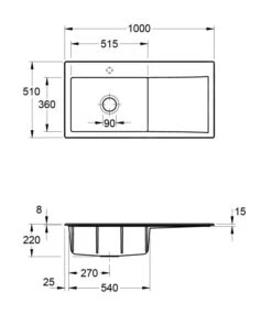 Villeroy & Boch Timeline Einbauspüle 679001RW Mit Ablaufgarnitur Und Handbetätigung, Stone White
