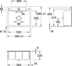 Villeroy Und Boch Siluet Flächenbündige Spüle 33461FR1 Mit Ablaufgarnitur Und Handbetätigung, Weiß