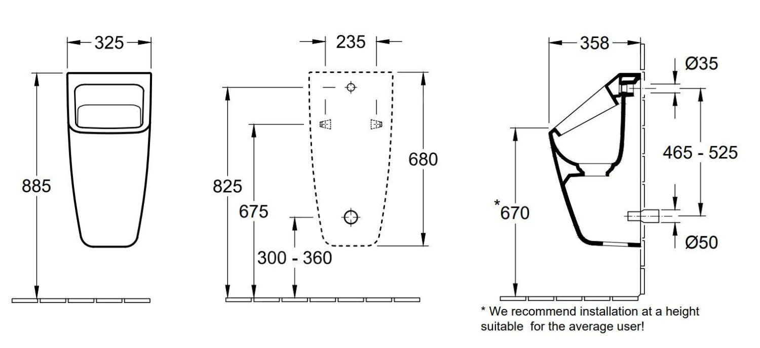 ViChange spezielles System für Pissoire mit Siphon, mit höhenverstellbarem Ablauf, der Siphon kann ausgetauscht werden ohne das Pissoir demontieren zu müssen.