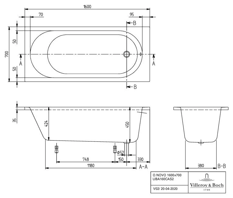 | Tiefe (innen bis zum Überlauf) | 450 mm |