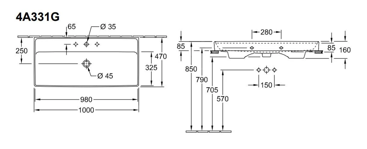 - Abmessungen: 1000 x 470 mm