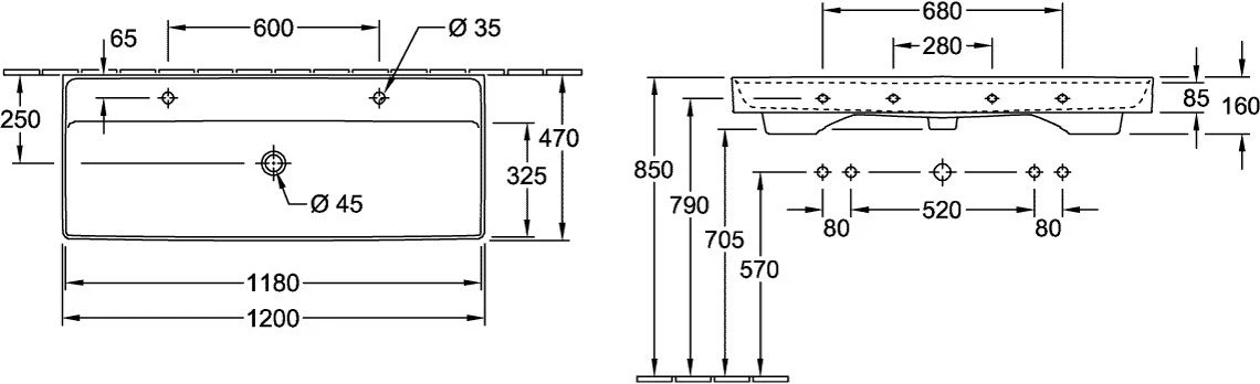 | Anzahl der Hahnlöcher je Waschplatz | 1 |