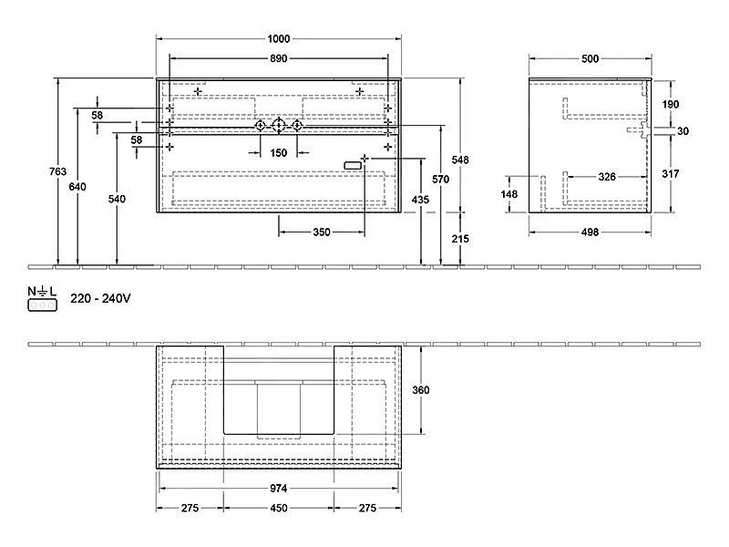 - Abmessungen: 1000 x 548 x 500 mm (BxHxT)