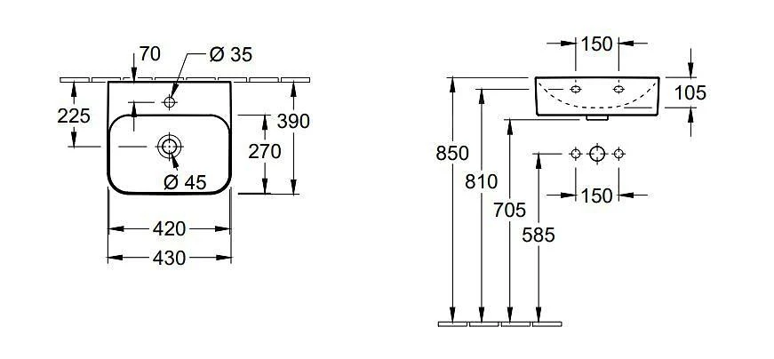 Rechteckiges Handwaschbecken mit CeramicPlus