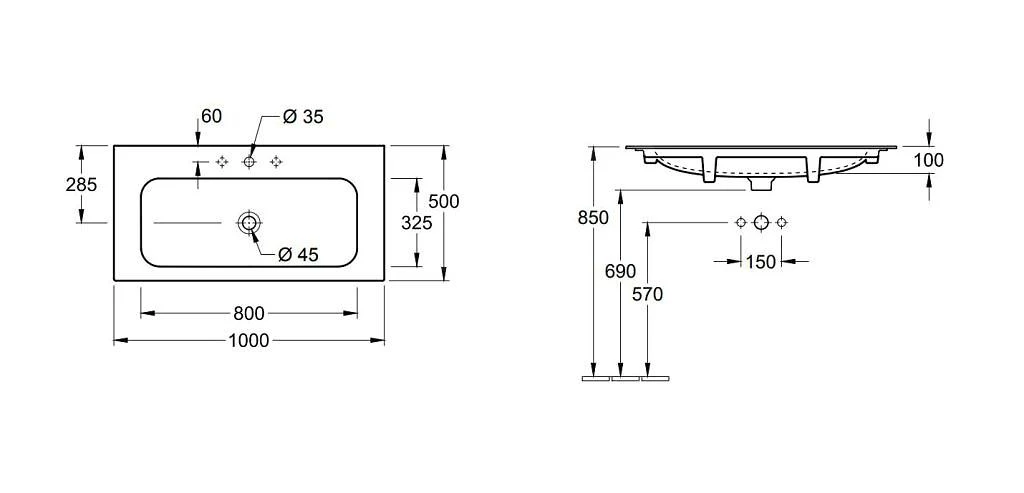 Waschtisch für Möbel ohne Überlauf mit CeramicPlus
