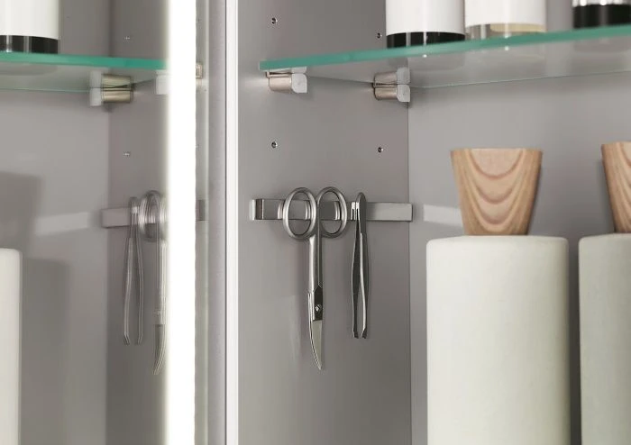 - Ausstattung: 2 Türen, 2 Glasfachböden, 1 Ablegeschale, 1 Vergrößerungsspiegel, 1 Magnetleiste