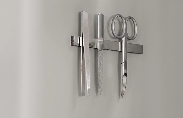 - Ausstattung: 3 Türen, 4 Glasfachböden mit Reling, 1 Magnetleiste, 1 Vergrößerungsspiegel, 2 Steckdosen, Sensorschalter, abschließbare Medizinbox, 6 Trennwände, 2 Relingstangen, 6 Beschriftungsfelder