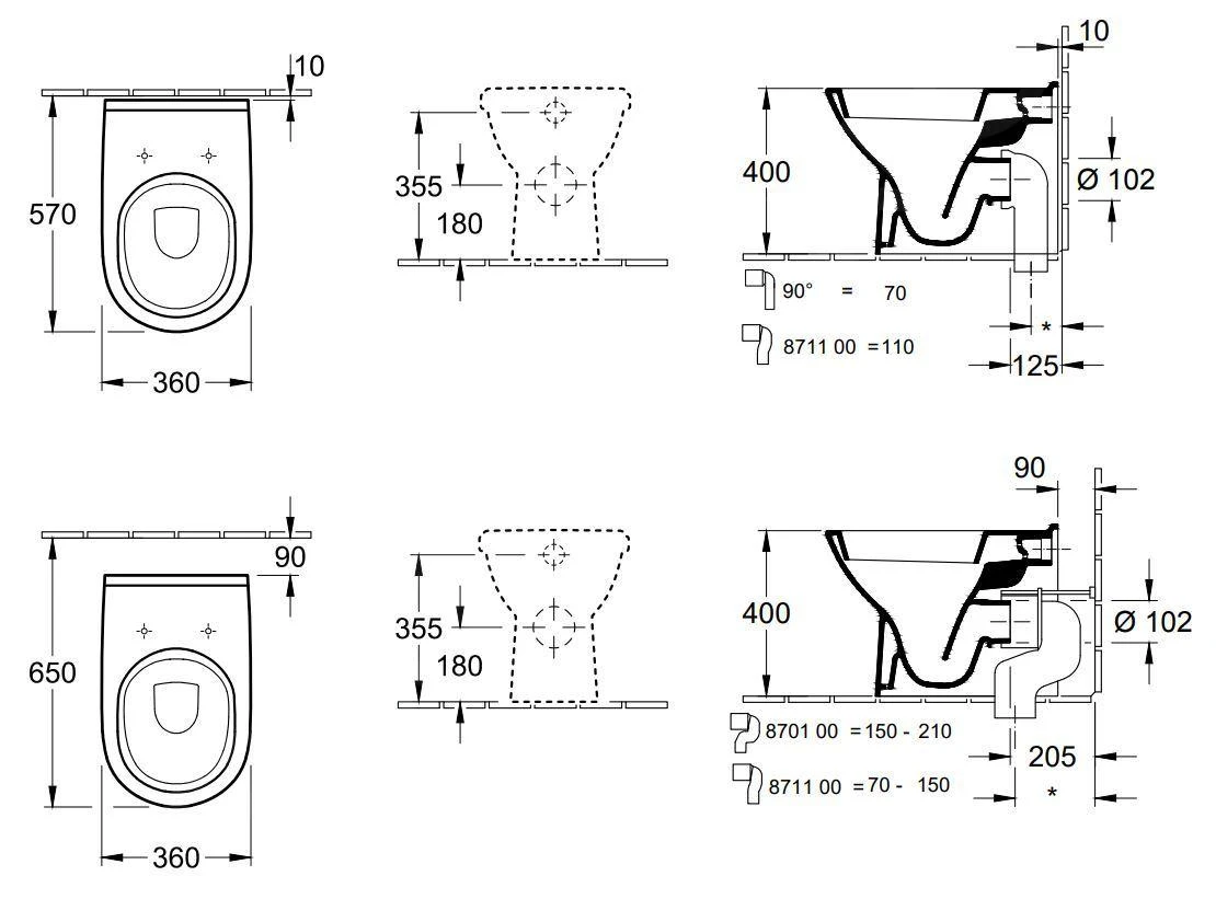 - waagrechter Abgang, wenn ein Vario Ablaufbogen verwendet wird, ist ein Übergang auf einen senkrechten Abgang möglich