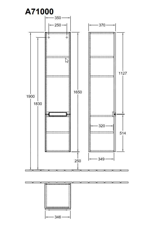 - Abmessungen des Schrankes: 350 x 1650 x 370 mm (BxHxT)