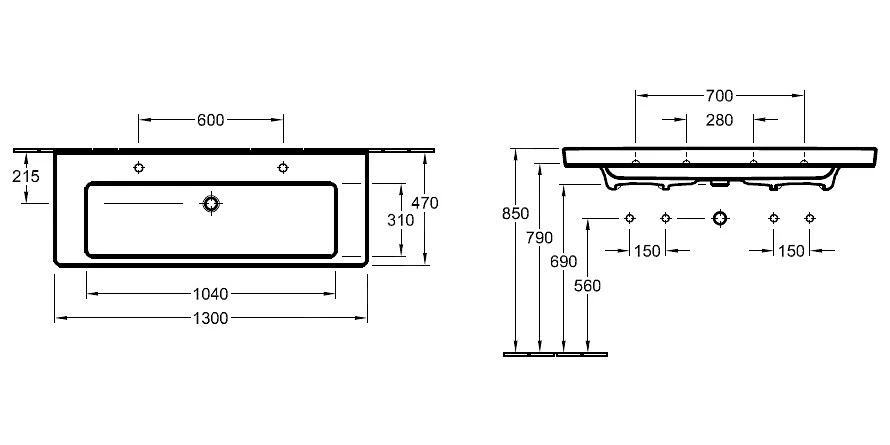 - für zwei 1-Loch-Armaturen, Löcher für Armaturen gestanzt