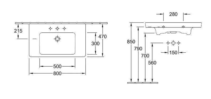 - der Waschtisch kann mit Möbeln, einer Säule oder einer Halbsäule kombiniert werden
