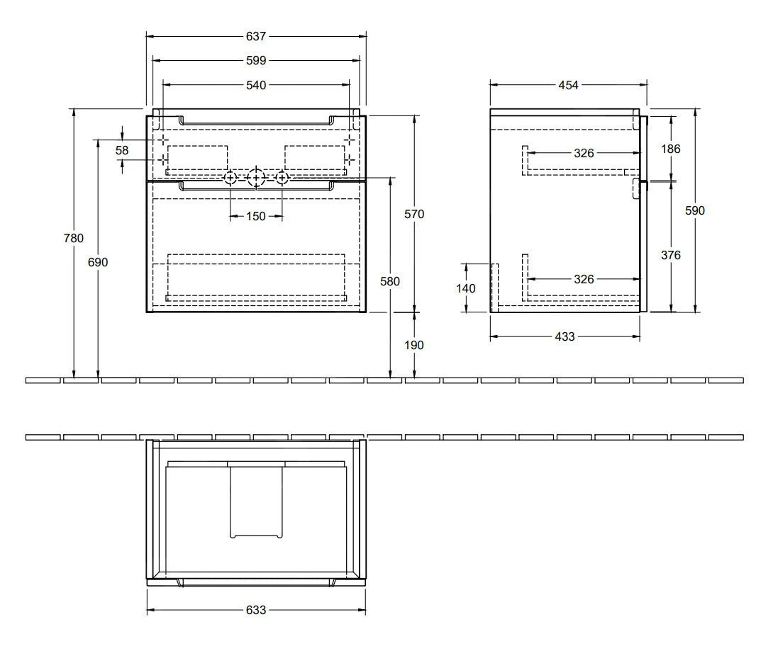 - Abmessungen: 637x590x454 mm (BxHxT)
