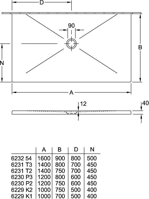 - Diese Duschwannen werden an der langen Seite geschnitten und müssen mit der geschnittenen Seite (Seite nicht glasiert) gegen die Wand plaziert werden