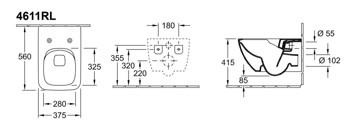 Hinweis: Dieses WC ist nicht für Druck / pneumatische Spüler geeignet.