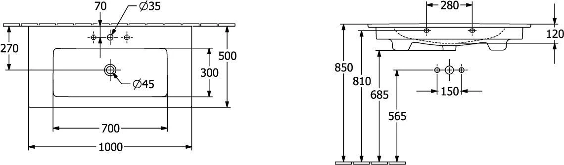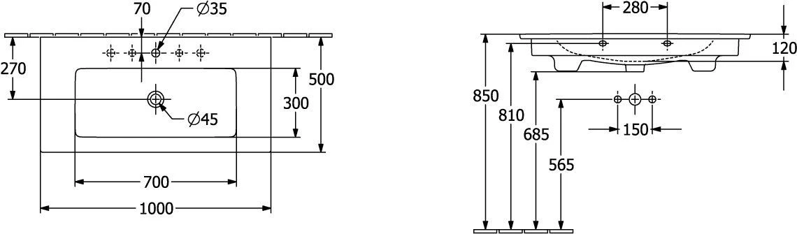 | Durchschlagbare Armaturenlöcher | links und rechts |