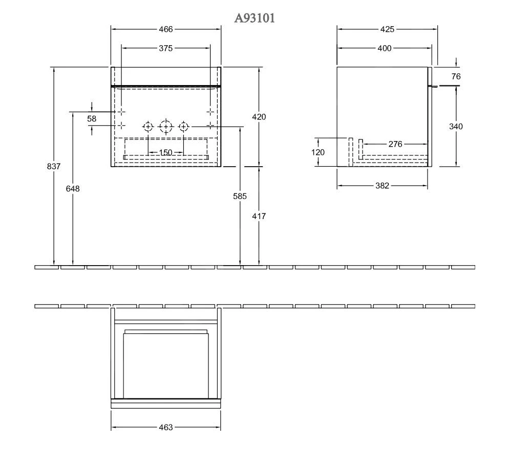 - Schrankabmessungen : 466 x 420 x 425 mm (BxHxT)