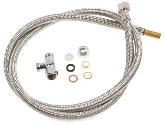 - bestehend aus: T-Stück, flexiblem Schlauch 1300mm mit Überwurfmutter 1/2″ x 3/8″