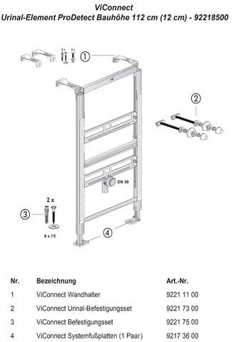 - mit 2 Urinalbefestigungsbolzen M 8 inklusive Bauschutz und verchromten Abdeckungen