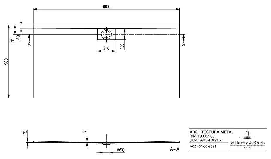 Villeroy und Boch Architectura Metalrim Duschwanne DA1890ARA215V1S